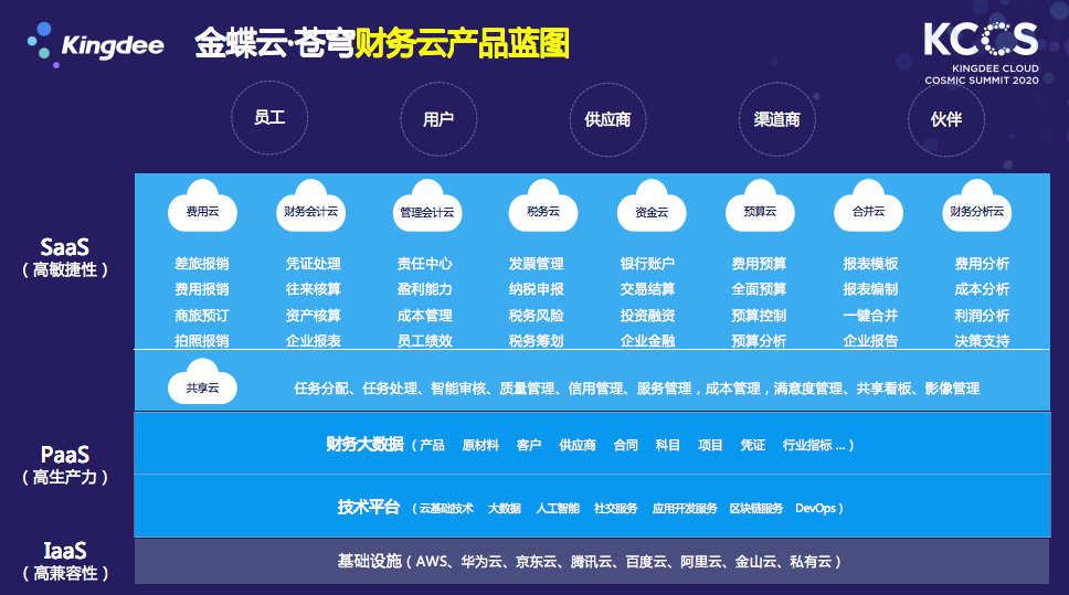 金蝶云.蒼穹作為首款云原生架構(gòu)的產(chǎn)品,其PaaS平臺與傳統(tǒng)云廠商的PaaS平臺有一些概念上的不同。一般的IaaS層提供的是存儲服務(wù)、計算服務(wù),也會配套提供一些高控制力的PaaS層,即泛域,主要對計算服務(wù)、中間件、數(shù)據(jù)計算提供泛域的服務(wù),比較關(guān)注IaaS層和PaaS層的內(nèi)容。而金蝶的蒼穹關(guān)注的是中間限定域的高生產(chǎn)力PaaS層和SaaS層的應(yīng)用。這個高生產(chǎn)力的PaaS層主要提供應(yīng)用開發(fā)服務(wù)、流程服務(wù)、集成服務(wù),是跟企業(yè)應(yīng)用更貼近的服務(wù),而不是云計算資源的服務(wù)。所以金蝶云·蒼穹提供的是SaaS和PaaS高生產(chǎn)力的連續(xù)體。